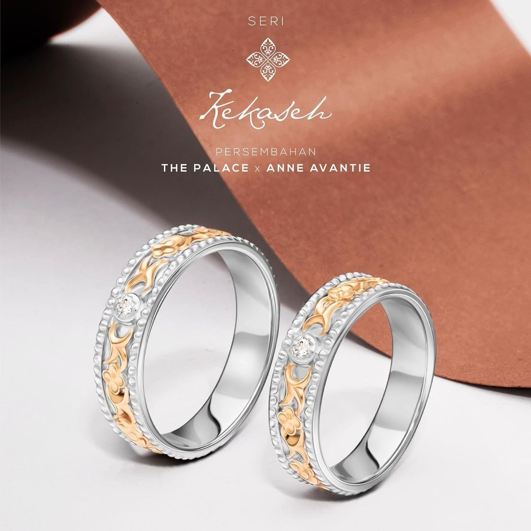 Model cincin nikah emas dengan berlian koleksi Kekaseh hadir dengan desain yang unik dan sarat makna menjadi inspirasi bagi pasangan yang ingin memiliki cincin nikah dengan sentuhan budaya Indonesia yang kuat.