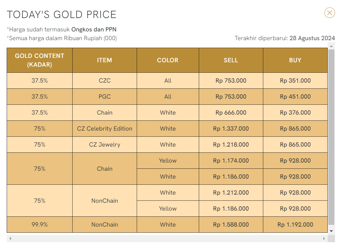 Selain itu, penting untuk memastikan bahwa perusahaan emas yang mencantumkan harga perhiasan di website, perusahaannya memang benar-benar ada. Misalnya, bisa dilihat dari peta dan alamatnya, nomor teleponnya, hingga profil perusahaan.