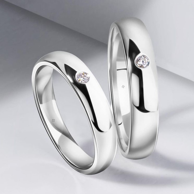 Opsi lainnya ada cincin wedding ring berbalut white gold yang simple nan elegan berikut ini. Tatahan berlian kecil di tengahnya membuat tampilannya makin manis.